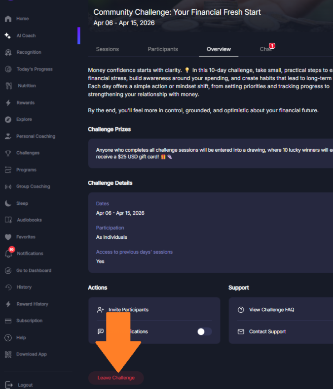 We strive to make your wellness journey as seamless as possible, including when you need to exit a challenge. Whether you're on the go with our mobile app or enjoying the comfort of your desktop, here's how you can gracefully leave a challenge: