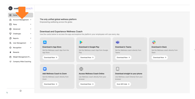 Access your admin account through the Wellness Coach portal. -