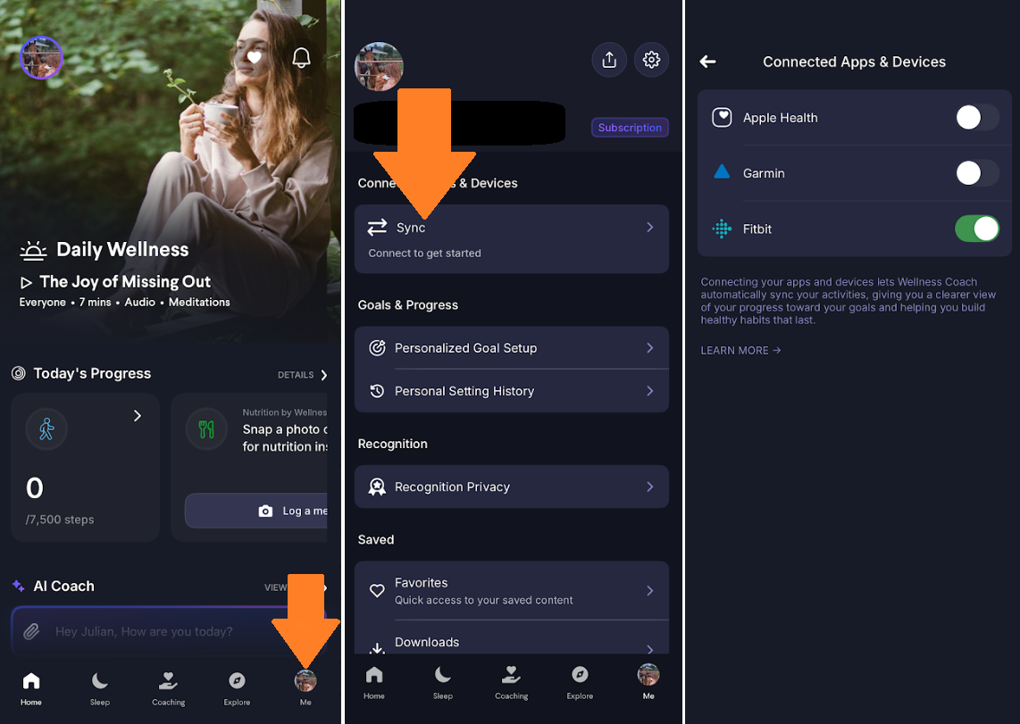 5. Once logged in through Fitbit, your Fitbit-tracked steps will seamlessly sync with the Wellness Coach app.