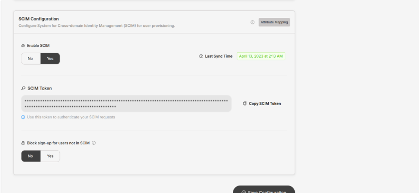 Step 3. In SCIM Configuration, click Attribute Mapping to open the mapping drawer.