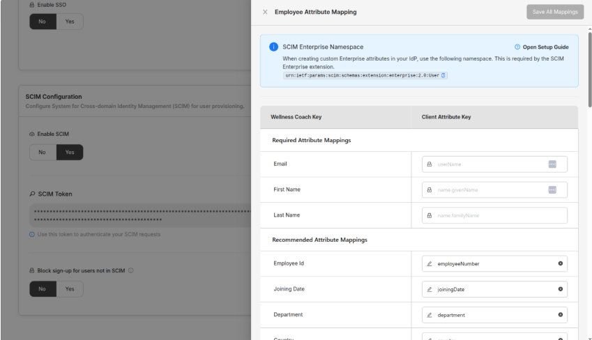 Step 4. For each field, map your Custom Attribute Key to the corresponding Wellness Coach Key, then click Save All Mappings